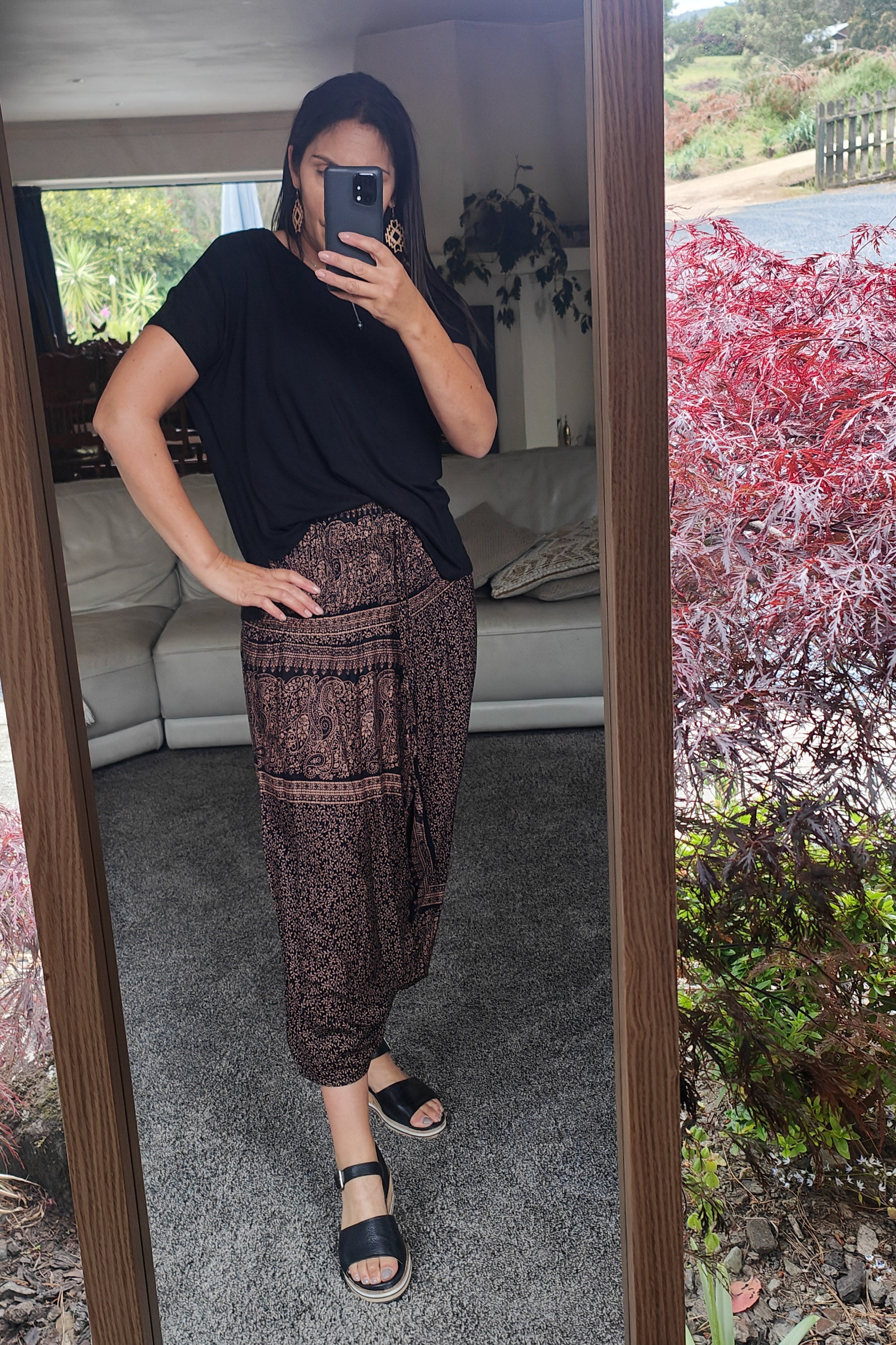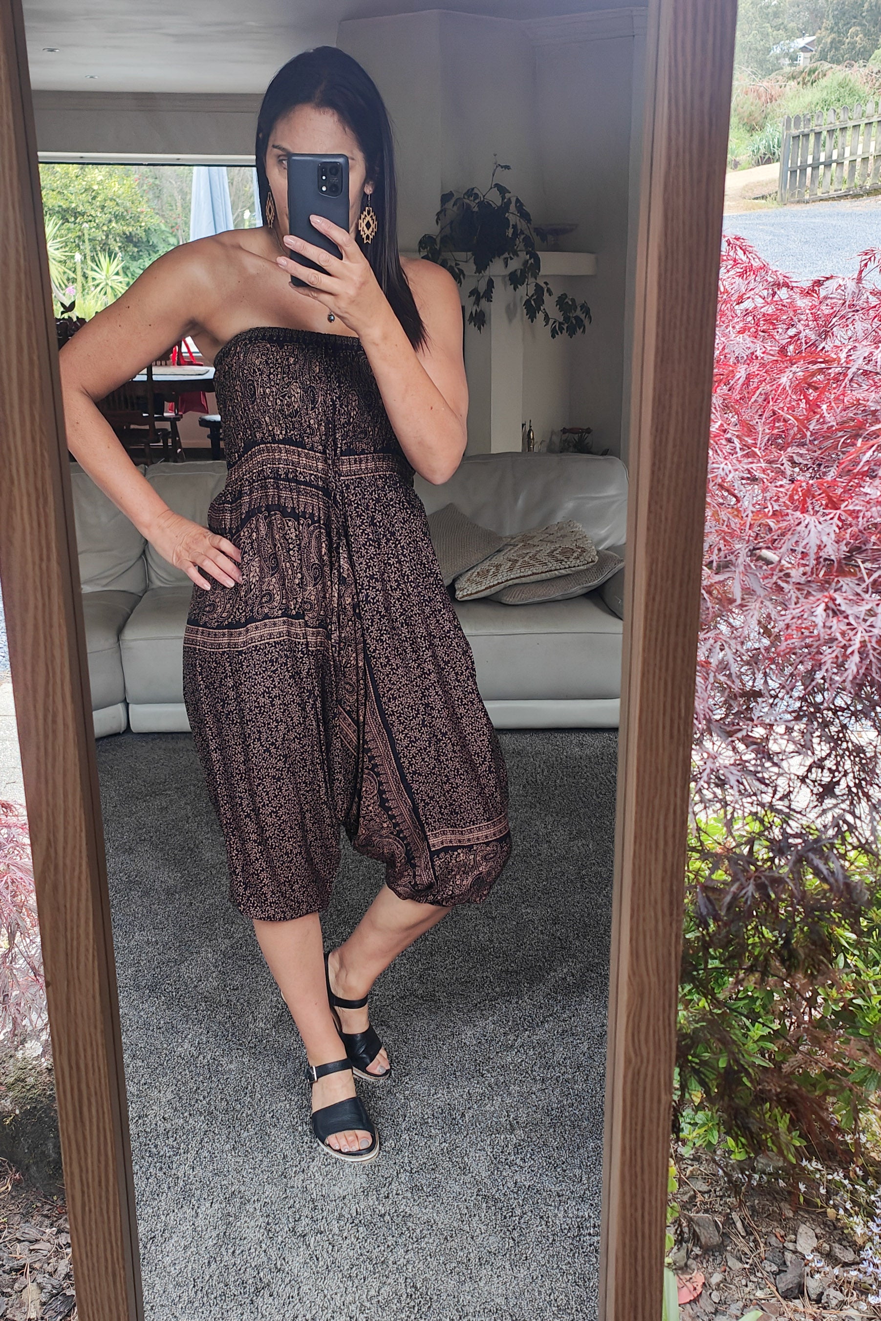 These are the funkiest pants you'll get and are super comfy to boot. Wear these as loose pants or pull them up as a jumpsuit for a different look.