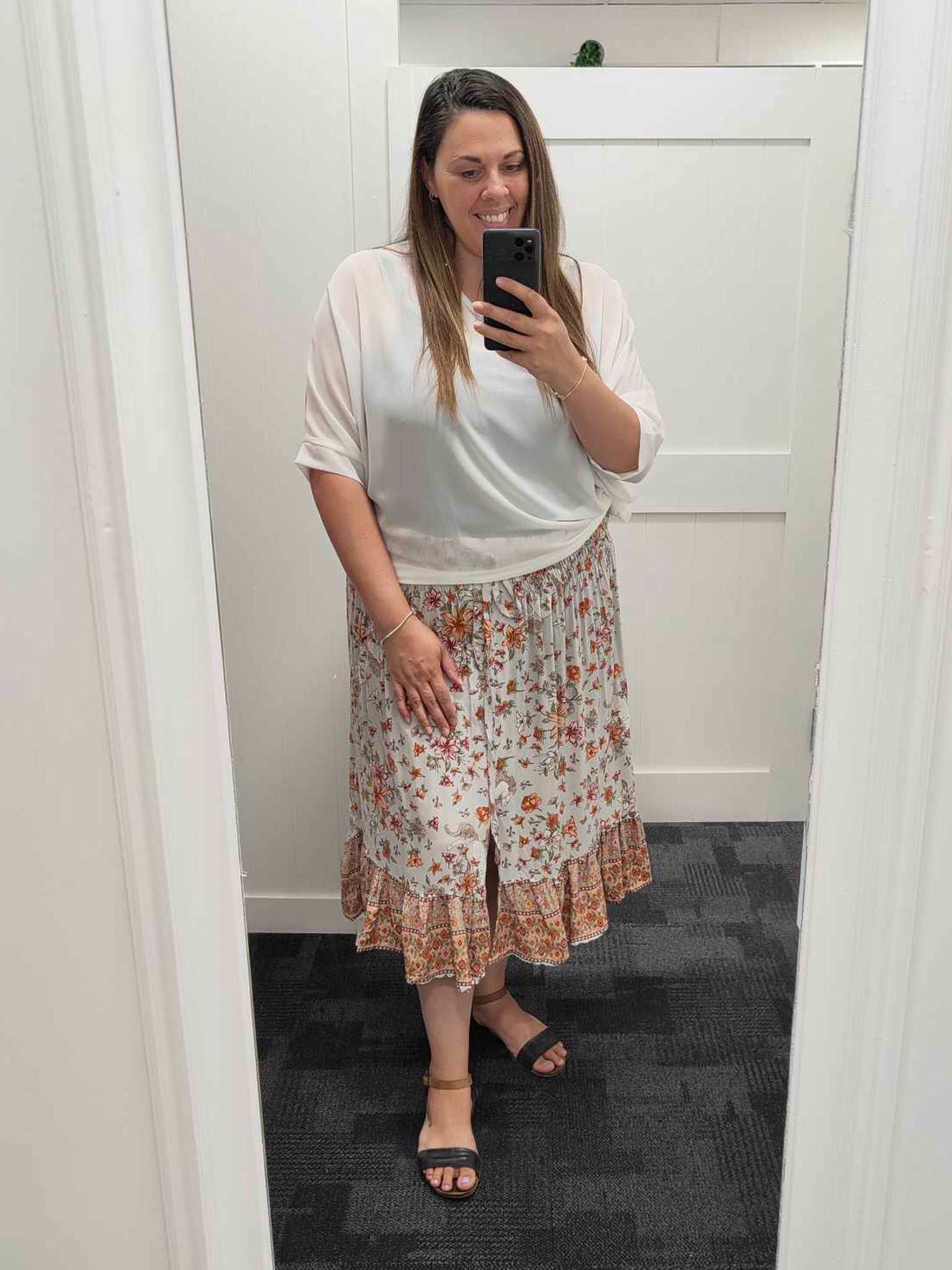 The design your wardrobe totally needs. This flattering maxi skirt will swirl in the breeze and is perfect for that weekend outing or special event.