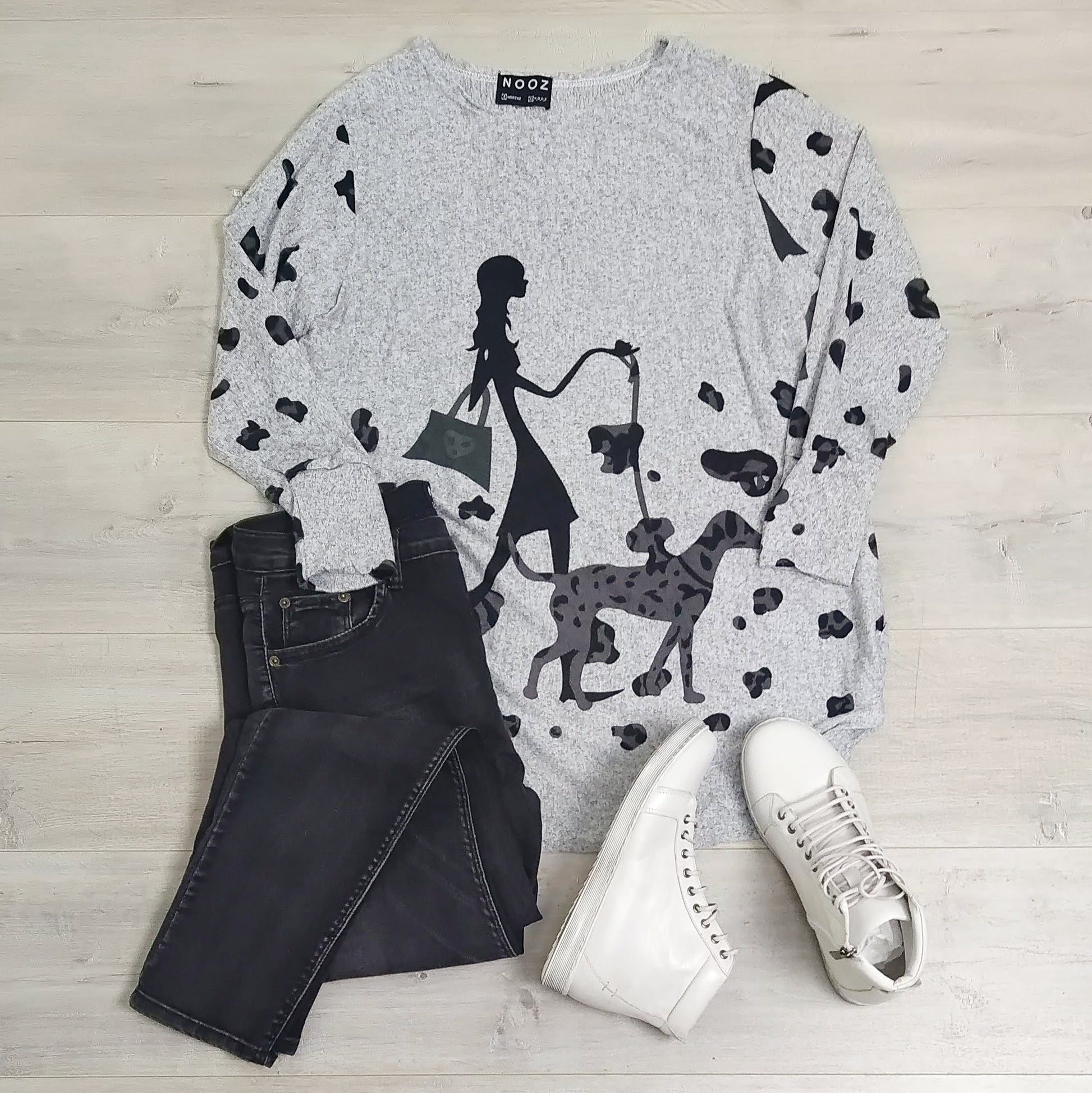 Fun patterned jersey, a lighter/medium weight but warm so great for layering on those cooler days.