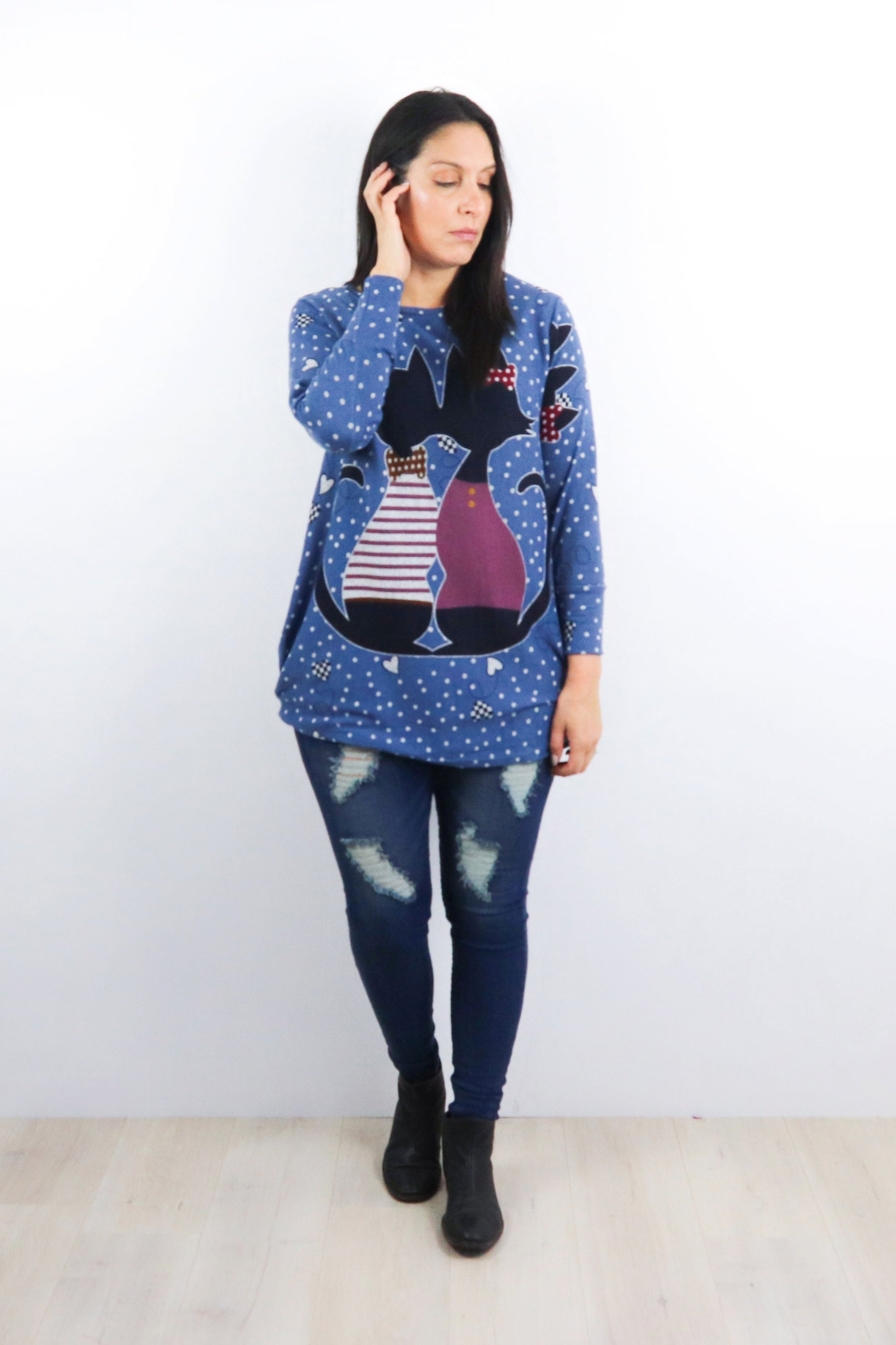 Fun patterned jersey, a lighter/medium weight but warm so great for layering on those cooler days.