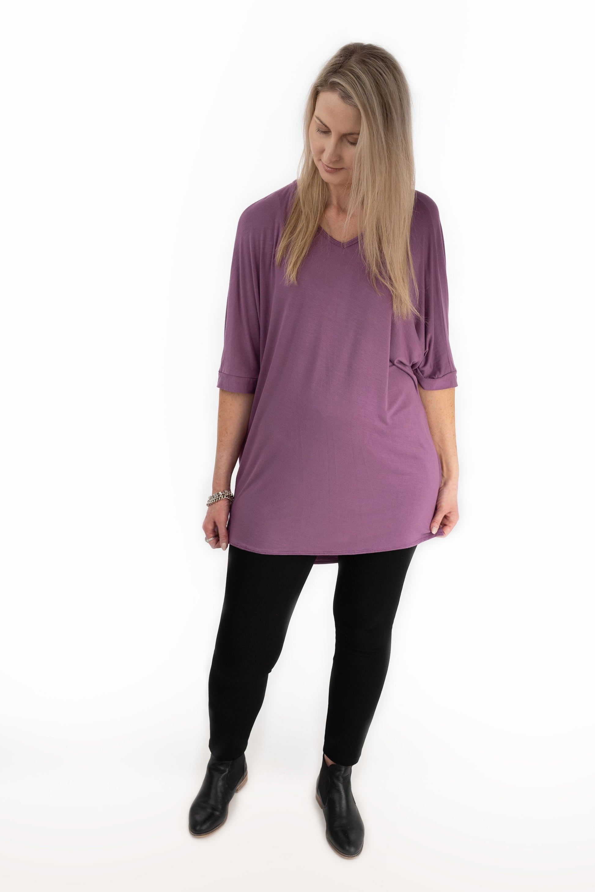 Wear them tucked in at the front or loose. These oversized tops are great for covering those difficult areas whilst still showing off your best bits, and can be worn different ways: