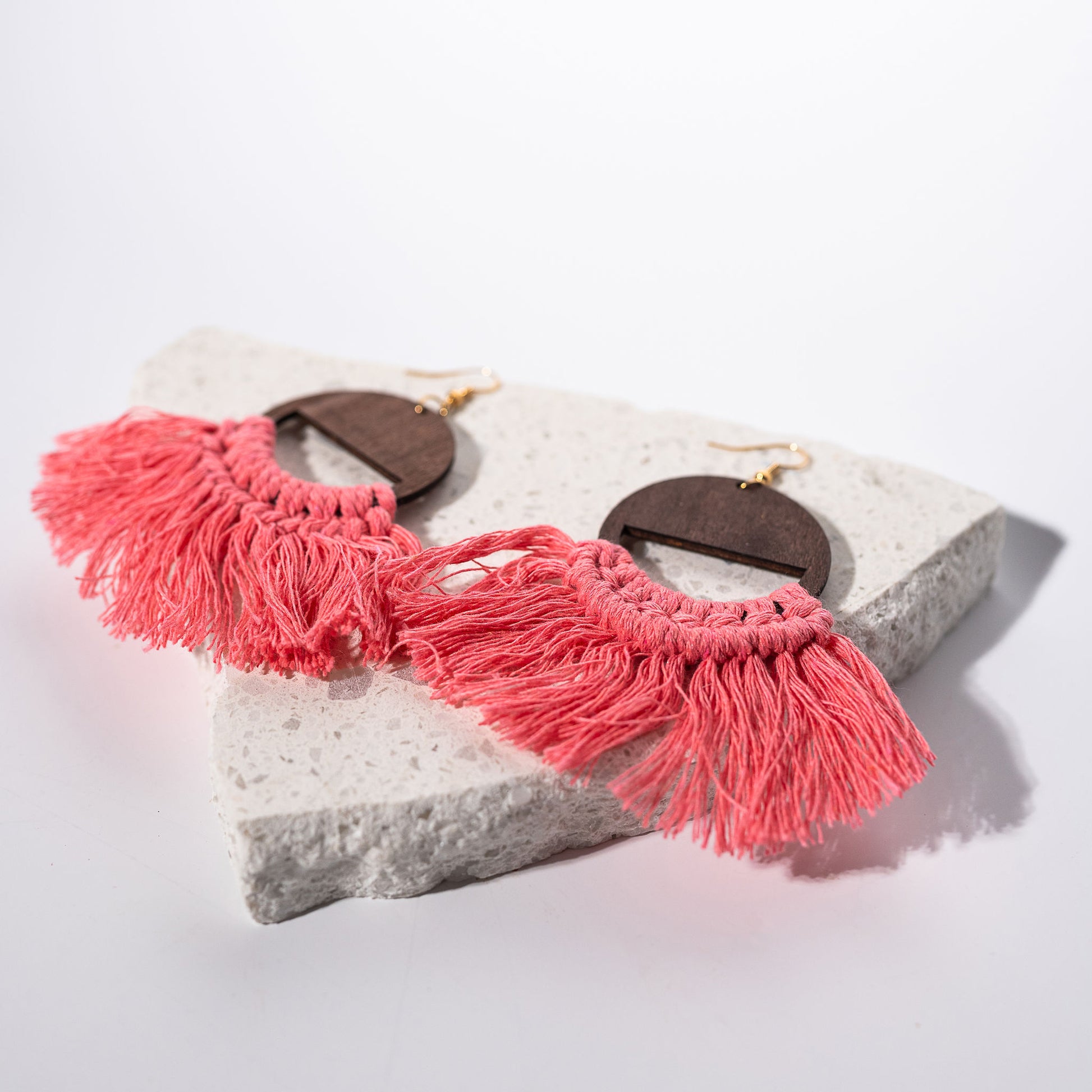 Wanting to add a POP of colour, these Macrame Tassel Wooden Earrings will do just that. Light and pretty, you'll be able to add these to any outfit.