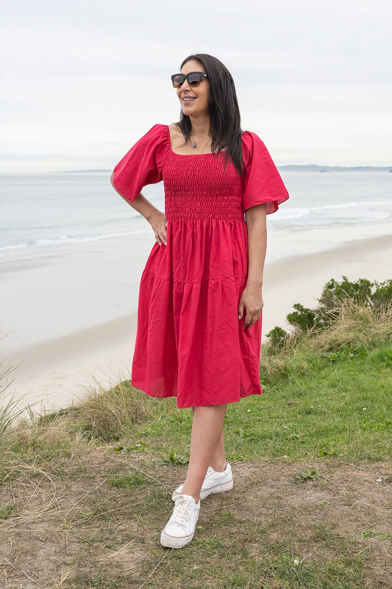 Plain Shirred Bust Louisa Dress - Fuchsia