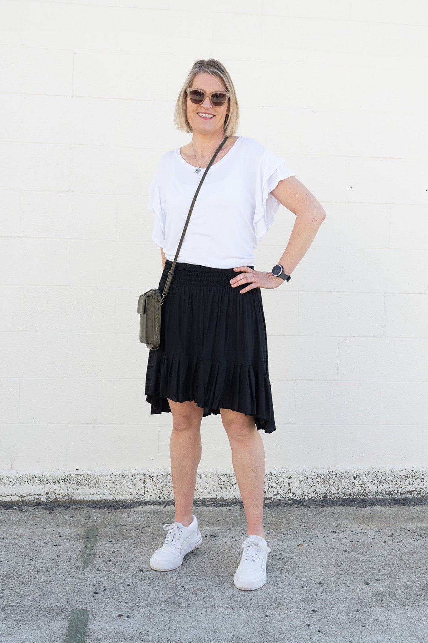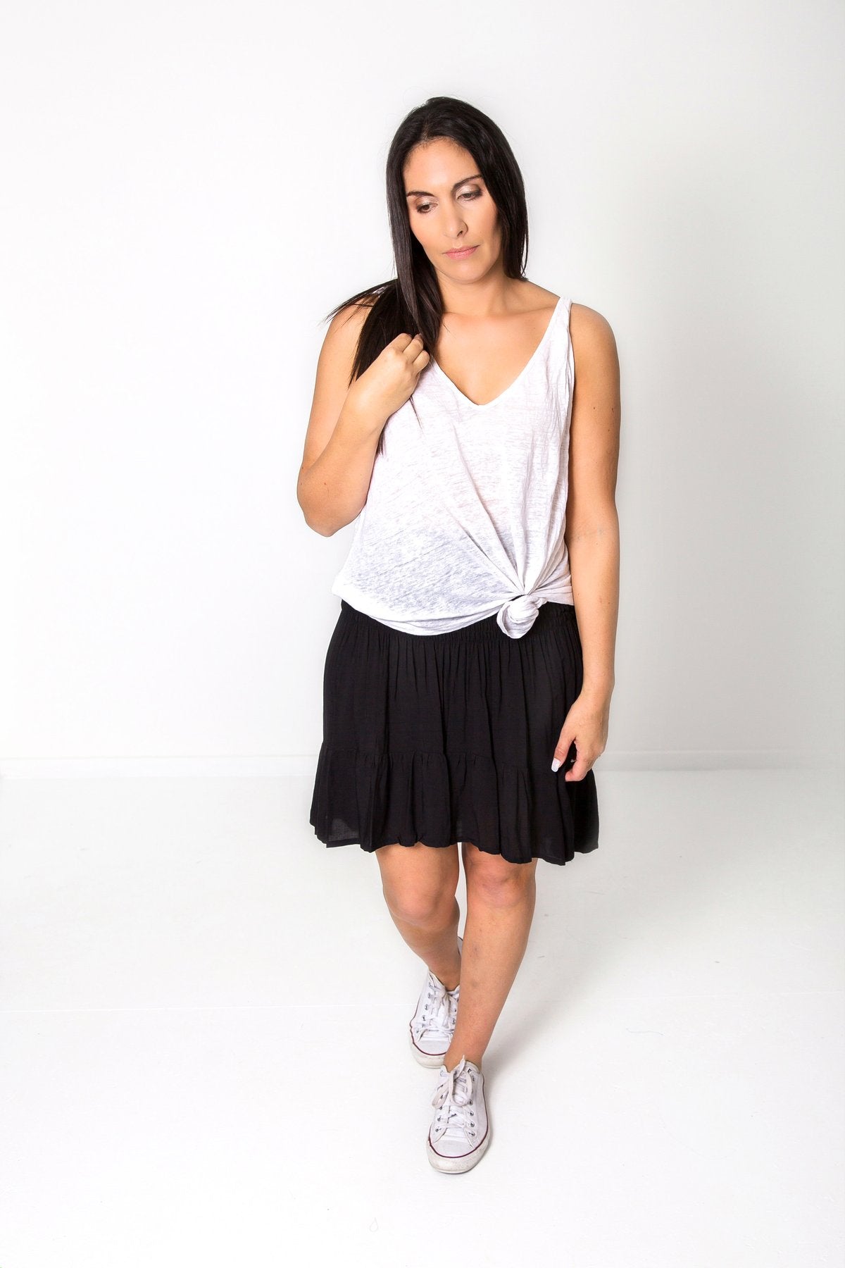 The design your wardrobe needs. This flirty rara style skirt is so easy to wear and shows just the right amount of leg. We also have these in a longer length.