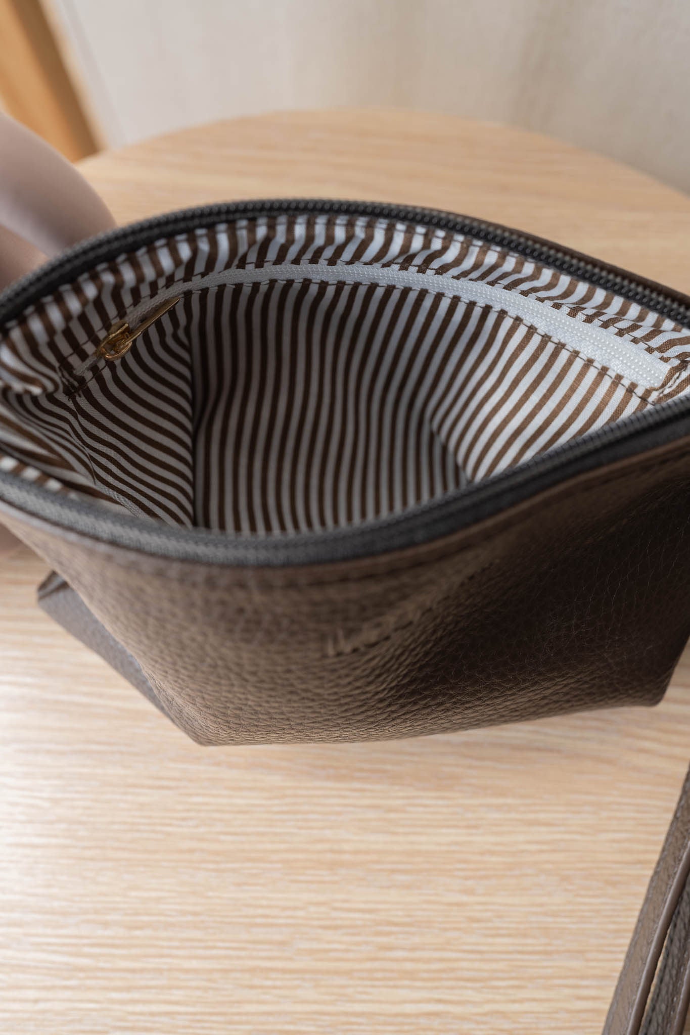 Details: Zipped interior pocket, playful fabric lining and comes with a shoulder strap.